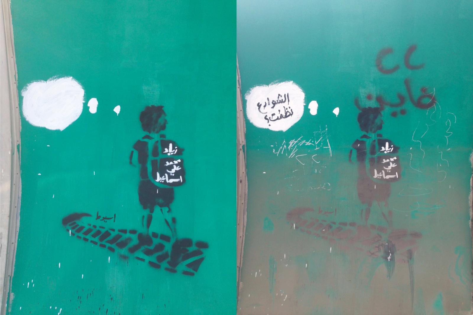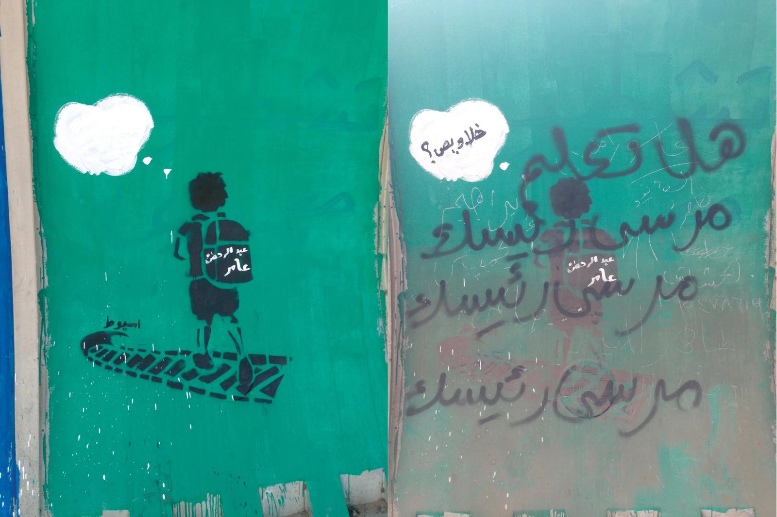 Figure 12. Inside bubble (in black by artist): has education improved? Cairo, Egypt. Line 1, sprayed in green: Remember Allah.