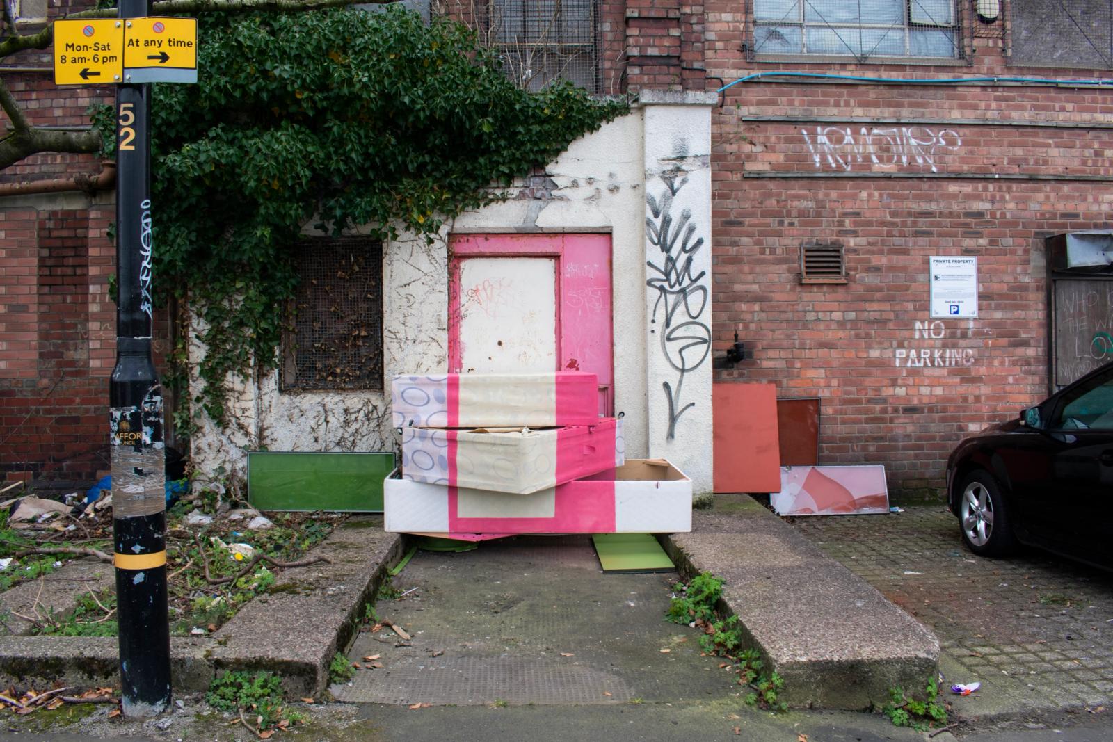 ill Architecture was born from a desire to shine a light through the ‘conspiracy of blindness’ (Thompson, 2017) to the rubbish problem in Greater Manchester. Fly-tipping, the act of dumping waste items and materials in public space, is a problem in the city – as it is wherever the UK government's policy of austerity has decimated local services. Piles of wood, prone mattresses, spilt bags of rubbish, and more can be found everywhere from dead ends, to ginnels, and residential areas. In poorer neighbourhoods, it has simply become part of the street furniture.