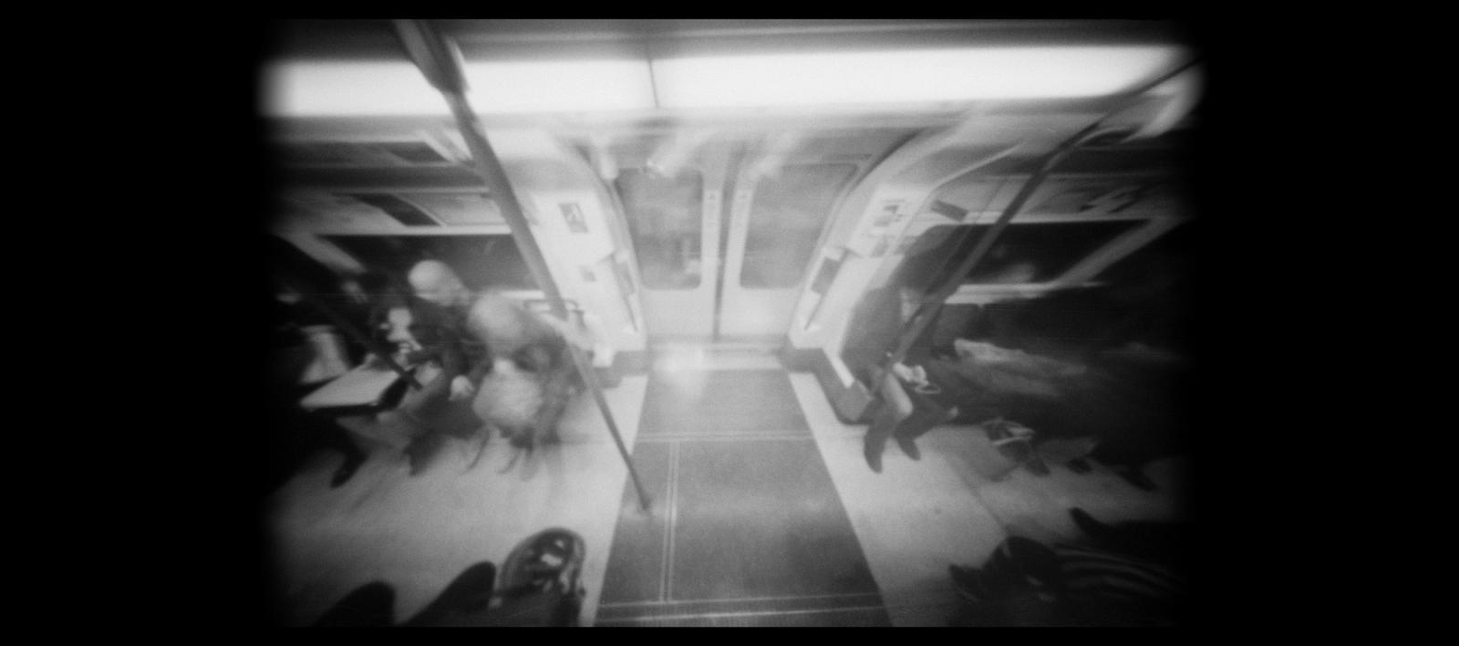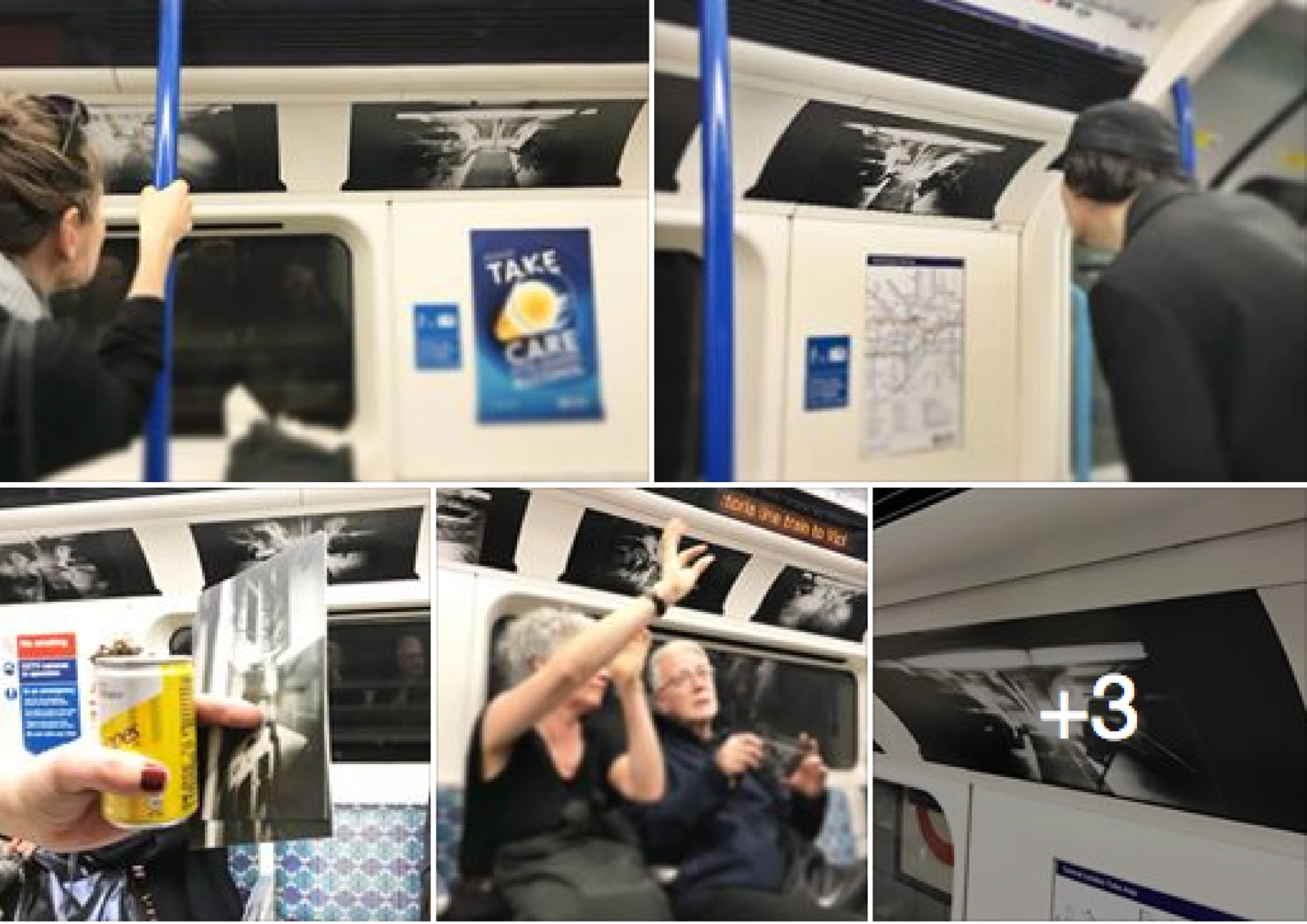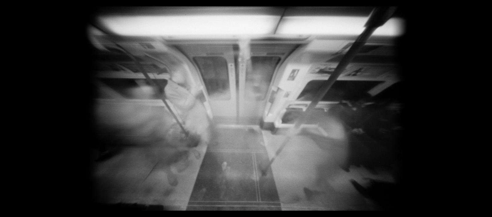 On the evening of May 10, 2018, the second to last carriage of a Victoria Line underground train in London got turned into a guerrilla exhibition featuring twenty-four grainy black and white images capturing the traces of morning commuters. These images were made by artist Alex Stone using a homemade pinhole camera. ‘Intervention I’, as she called it, took place with the aim of subverting this public, yet commercially-dominated space, creating an event as a way to free members of the public from the conventions of the underground and to encourage interactions between strangers. The text below is written by Vanessa Onwumezi and Martin Wakefield in response to the intervention.
