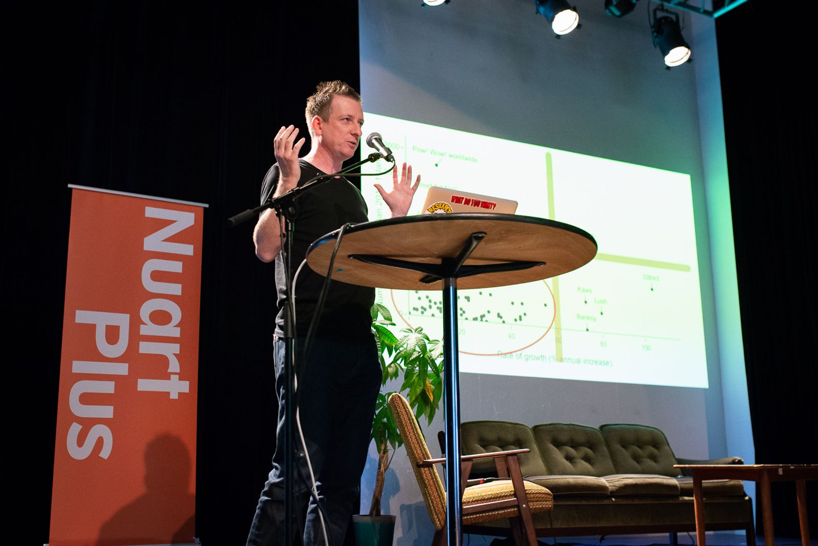 I’m trying to avoid the impression here of giving a Ted talk and also trying to avoid the impression of giving a share market report. My slides look a little bit like a share market report of street art, but really it’s about taking some tools and inventing some new methods that will help us to chart the institutionalisation of street art. So, for instance, some of my work has been about addressing this question of gender and thinking about how we can use Instagram to produce statistics to show the limited representation of women in the industry elite. As someone who got acquainted with street art at a time when it was a radical democratic practice, a practice that was an open invitation to change the city, it’s almost with horror that I lived through this technological change, but also this institutional change, which is producing a kind of aristocracy within street art – often with artists whose work I really admired, but I just had this uneasiness about this. So, I’m hoping that this work will not add to this production of an aristocracy, but rather provide more visibility to some of these tendencies.