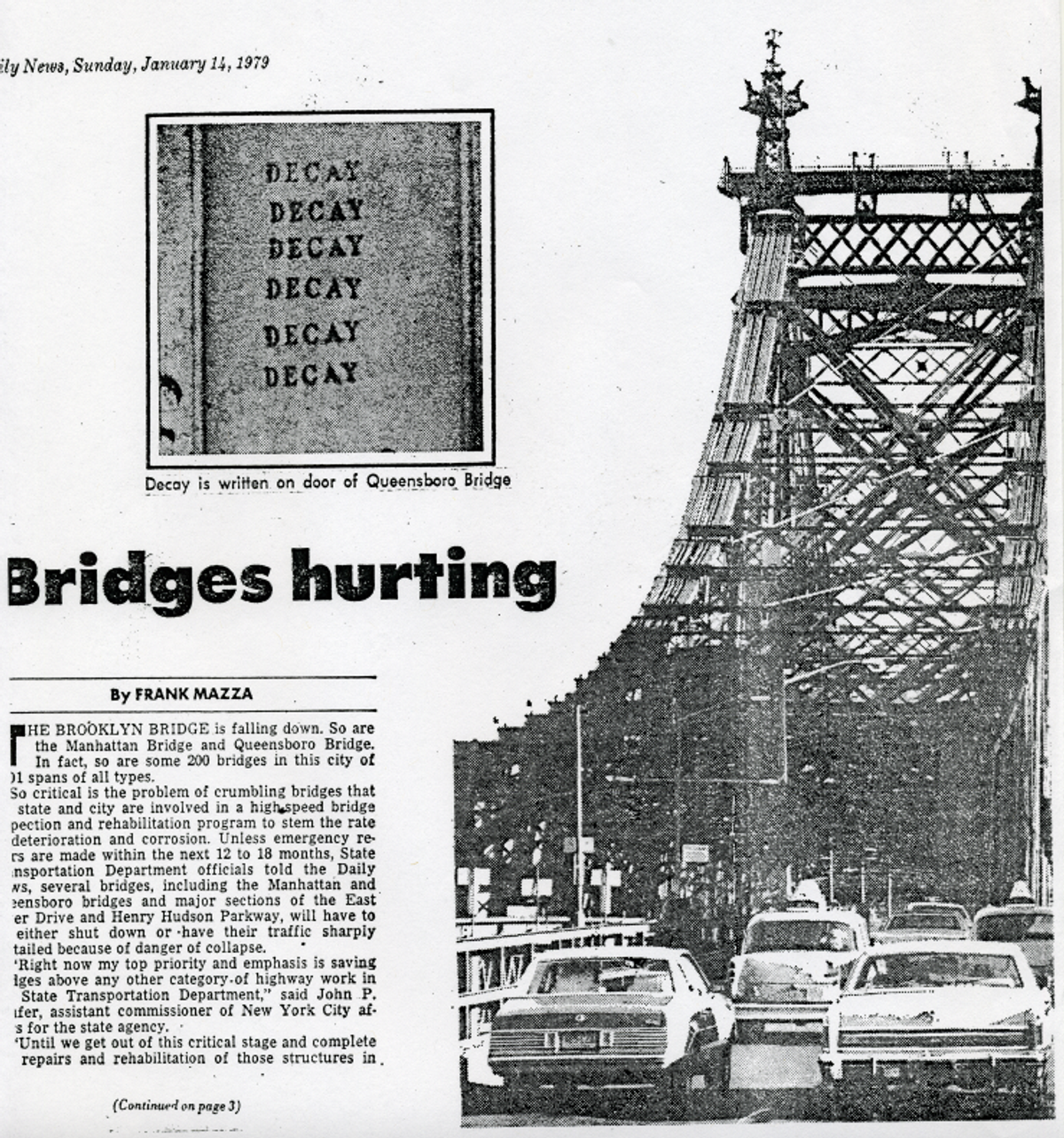 The Decay series was about calling attention to the infrastructural decay on NYC bridges. I was paying a lot of attention to my immediate environment and questioning why something was broken and not being repaired. I tried to emphasise the problem that other people seemed to block out of their vision – I aimed to make it more visible. I had started to notice that instead of repairing bridges, the city would first paint over them to cover up the rust and decay, rather than doing the structural work that was desperately needed. On some NYC bridges, parts of the concrete ceiling were falling down onto the roadway. They were crumbling and dangerous.