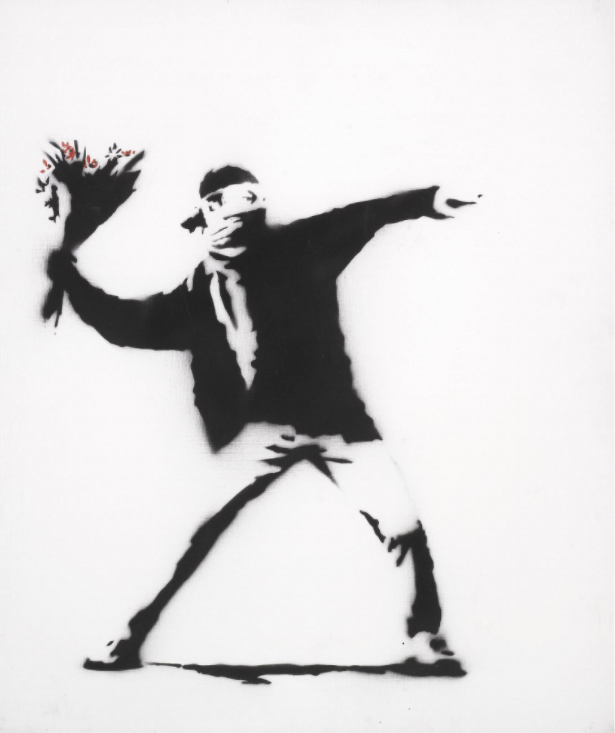 At one point in time Banksy was fiercely critical of intellectual property rights openly encouraging a culture of appropriation. Even though it appears this initial disdain has faded, his turn to the law has not been smooth. Indeed, the prominent and enigmatic artist has recently lost the EU trademark registration representing his artwork ‘Flower Thrower’ (Figure 1) following a cancellation action brought at the European Intellectual Property Office (EUIPO).