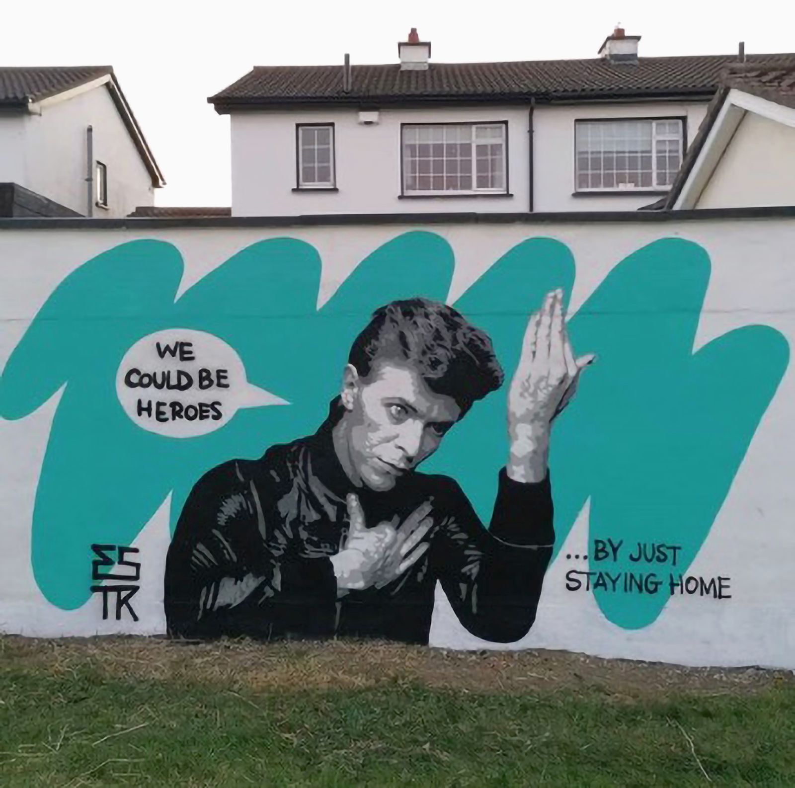 Graffiti reading ‘cops everywhere, hospitals nowhere’ was thrown up on a wall in Athens, Greece, a location that prior to the crisis was already activated as a site for highly politicised graffiti. A piece by lmnopi in New York City depicting a nurse wearing protective gear served as both a tribute to healthcare workers and a reminder of the public's obligation to stay healthy so as not to overtax the medical system. Misha Blaise's poster in Austin, Texas, depicting a fat cupid in his underwear accompanied by text reading ‘let love be your contagion’, was a lighthearted call for hope and unity during the crisis. Using a portrait of David Bowie and speech bubbles reading ‘We could be heroes’ with the addendum ‘by just staying home’, Emmalene Blake / ESTR made popular culture references to reinforce new social norms and reinforce public health guidelines (Figure 1).