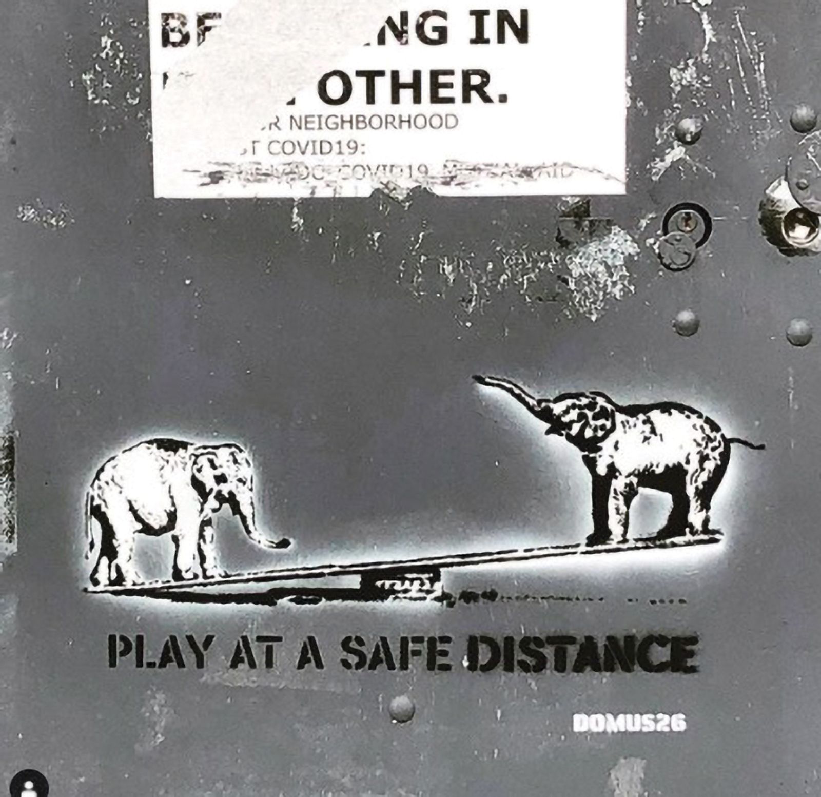 DOMUS26, ‘Play at a safe distance’, Urban Art Mapping: COVID-19 Street Art, accessed September 28, 2020, https://covid19streetart.omeka.net/items/show/424.