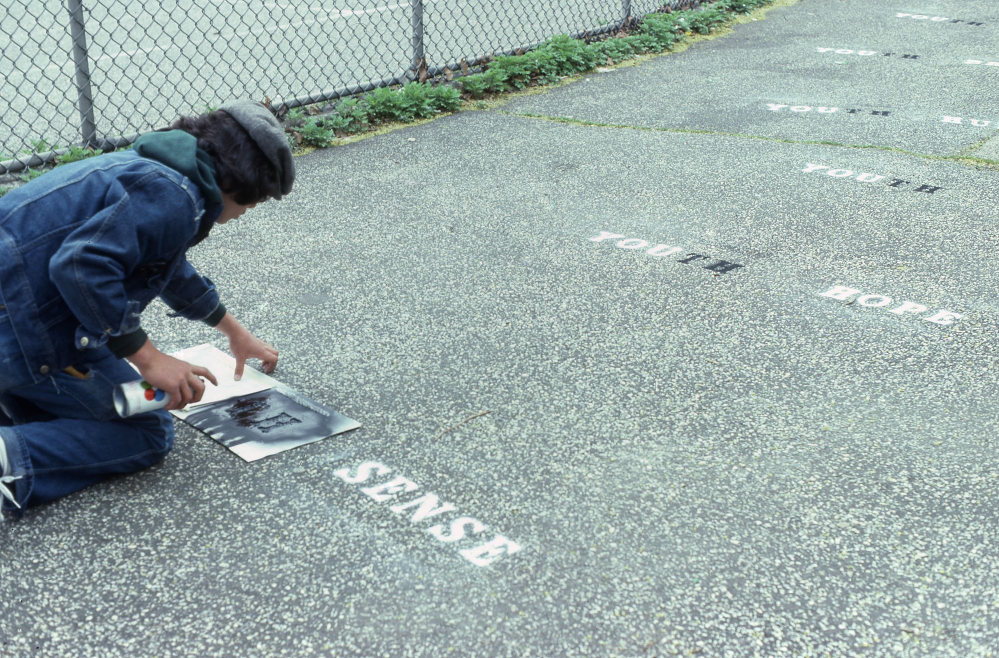 of environmentally conceptual works consisting of words, symbols, and dates painted throughout the five boroughs of New York in