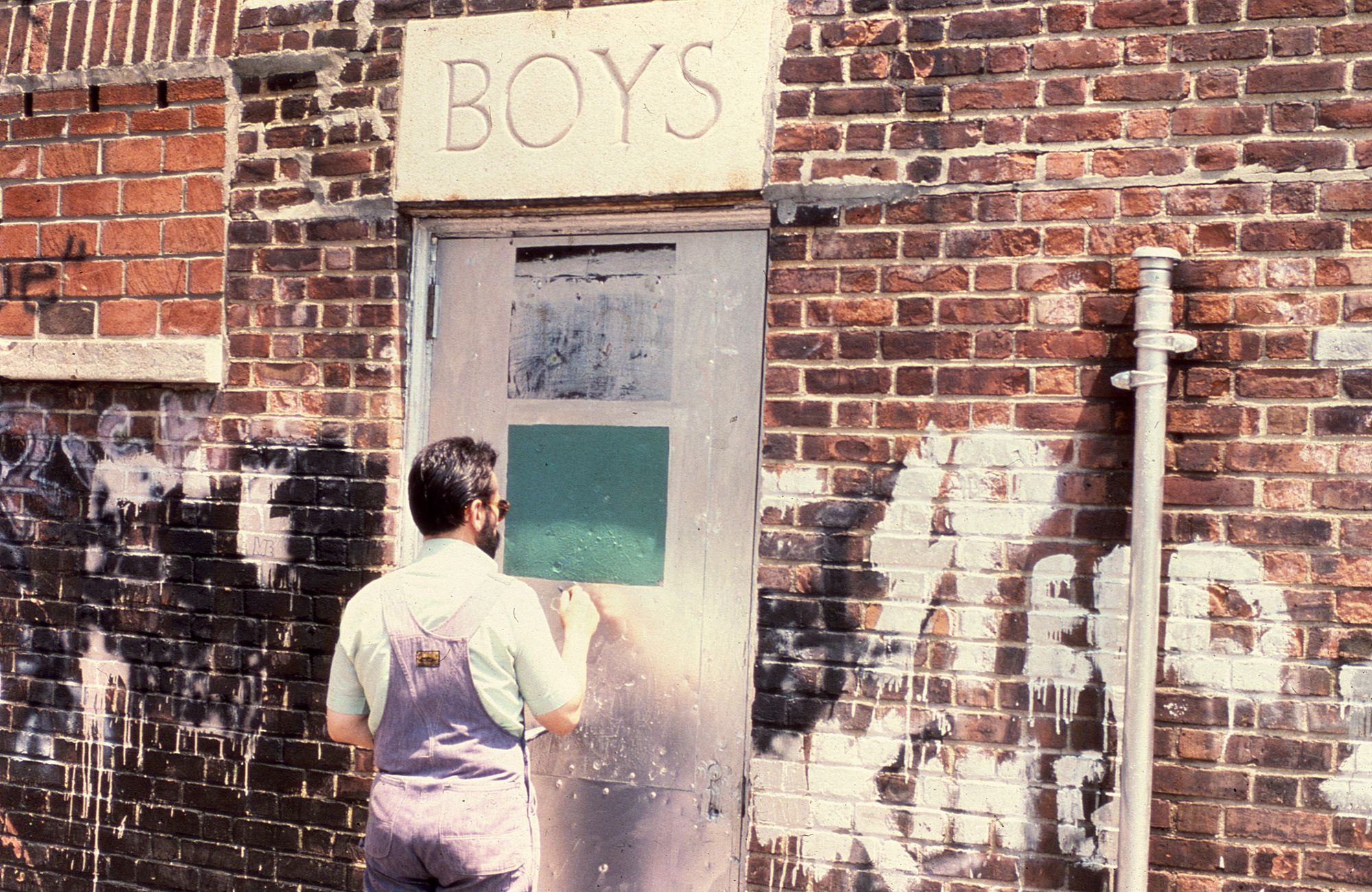 Len Bellinger (painted water fountain), on Leicht (park bathroom)