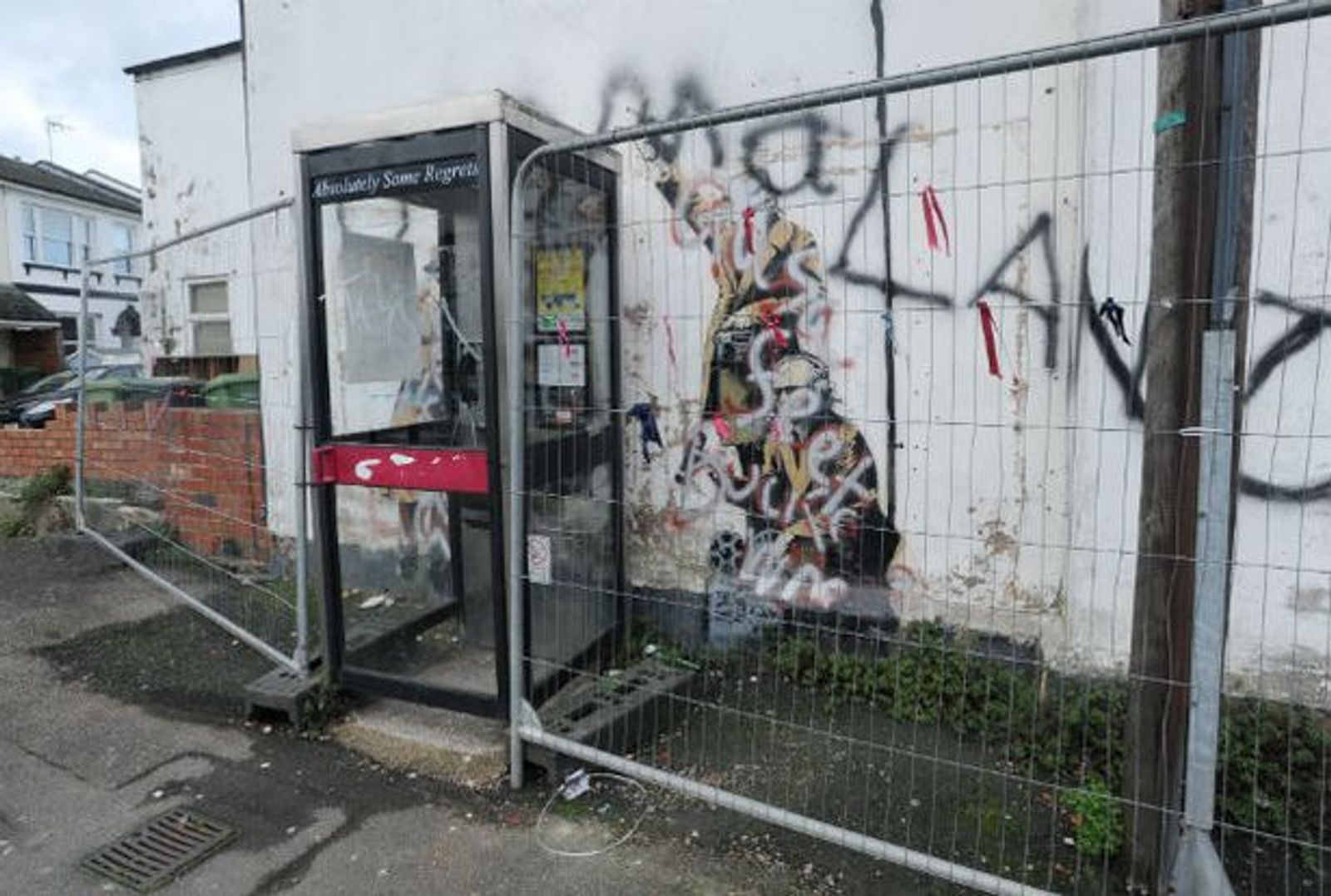 Banksy’s Spybooth (see Figure 1) was located on the exterior wall of a Grade II listed property in Cheltenham. It represents the first case (in the United Kingdom) of a work of street art being extended heritage protection to prevent its removal for private profit and sale on the art market, and to enable the maintenance of the work in situ for the benefit of the community to whom it had been ‘gifted’. Although it was granted heritage protection, Spybooth survived in situ for a period of just 28 months (14 April 2014 – 20 August 2016). The intervening period witnessed a series of attempts, by various parties, to either remove and profit from, protect and preserve in situ, or vandalise and destroy, the work.