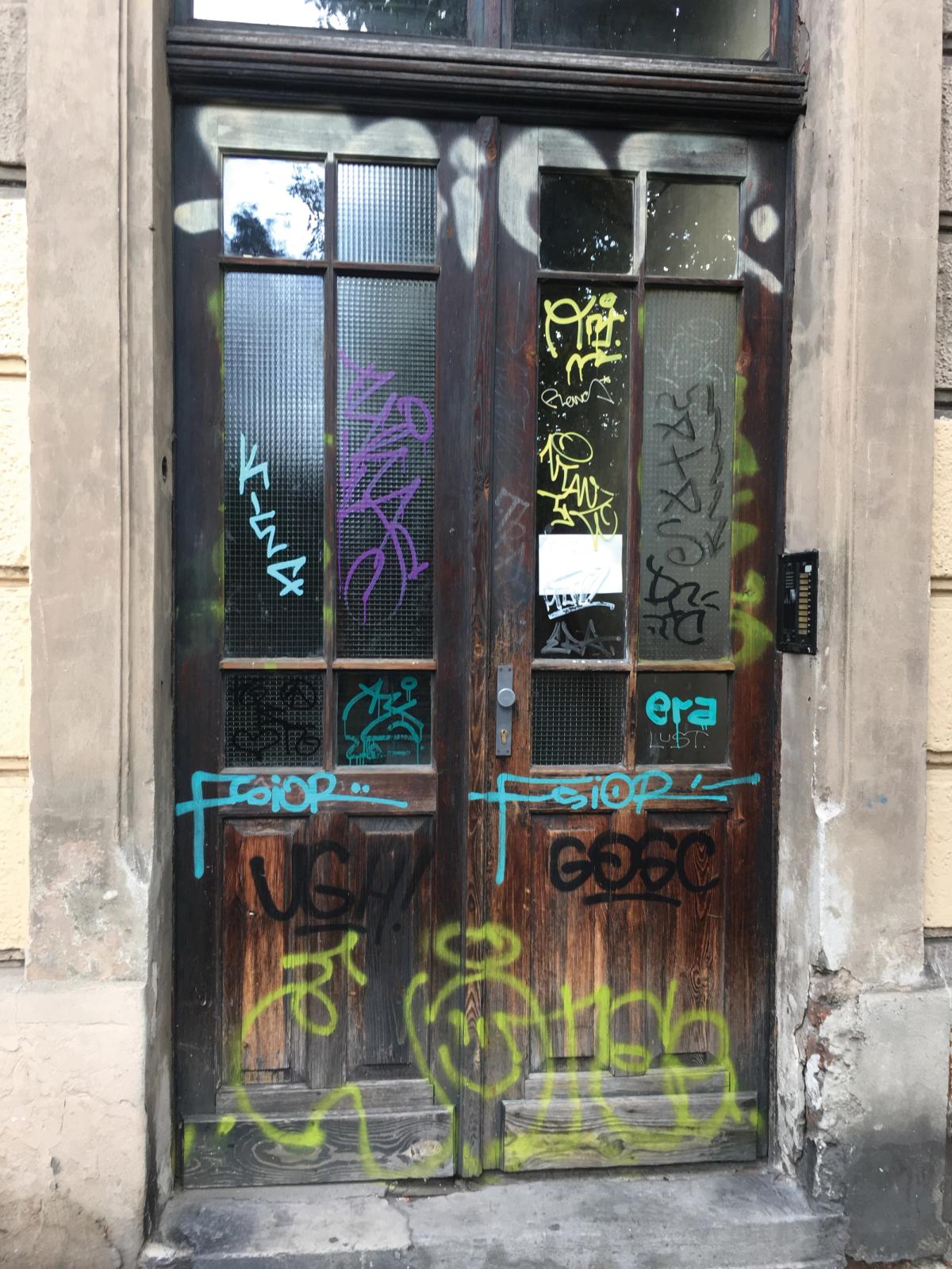 All previous research on graffiti agrees that the central rule in graffiti is name-based, and with that comes the sanctity of the individual tag, and, by extension, the collective name of the crew. Presence claims ownership, albeit symbolically, to the point that a tag on a postbox means that that particular surface is owned by that name. Going over a tag with another tag is a symbolic slap to the face, going over someone’s piece with a tag is the symbolic equivalent to a kick to the face. I am not going to delve into details here, we all know that the subculturally cherished currencies of time and commitment could here be added as a sign of respect rather than disrespect. A piece or a throw up over a tag still respects the latter through the investment of more time, more effort, and thus more risk. My point here is rather how the already marked is spatially attributed. A single door can thus be divided into dozens of small patches of individual land, each owned by a single tag, or the door could be claimed in its entirety through a throw up that fully covers it.