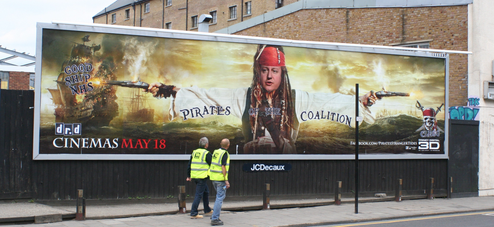 (ii) Rupert Murdoch’s face with the words What A Jeremy Hunt ‘stickered’ over his mouth is one amongst many Dr. D works that challenge abuses of power. (iii) A billboard détournement portraying David Cameron – Conservative Prime Minister of the United Kingdom from 2010 to 2016 – as a ‘Pirate of the Coalition’ takes aim at one of the buccaneers of Tory policy being geared towards austerity: incompetent, short-sighted and self-serving governance is a subject Dr. D returns to time and time again (Figure 4).