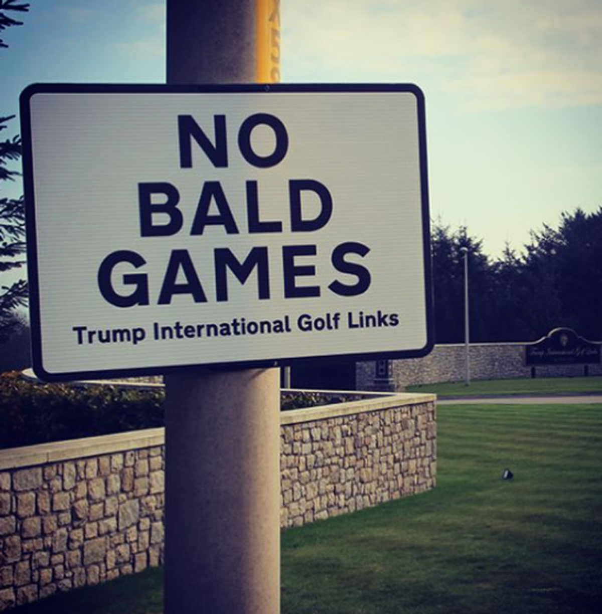 The relation between Dr D.’s work and its particular placement is on occasion more obviously pointed. He was also in the Granite City with Nuart but while I shuffled bits of paper, Dr. D got to work round the town and surrounds of Aberdeen. The city was once infamous for having more ‘No Ball Games’ signs up that anywhere else in the UK. It’s also a near neighbour to Trump’s golf links. Dr. D affixed to road signage directing traffic to the abominably coiffed POTUS’s pitch n putt, a sign work that read, No Bald Games (Figure 2). Right under the noses of Trump employees it probably didn’t last long, but to a degree the act of putting it up at all, commiting principled civil disobedience, is very much a part of Dr. D’s practice.